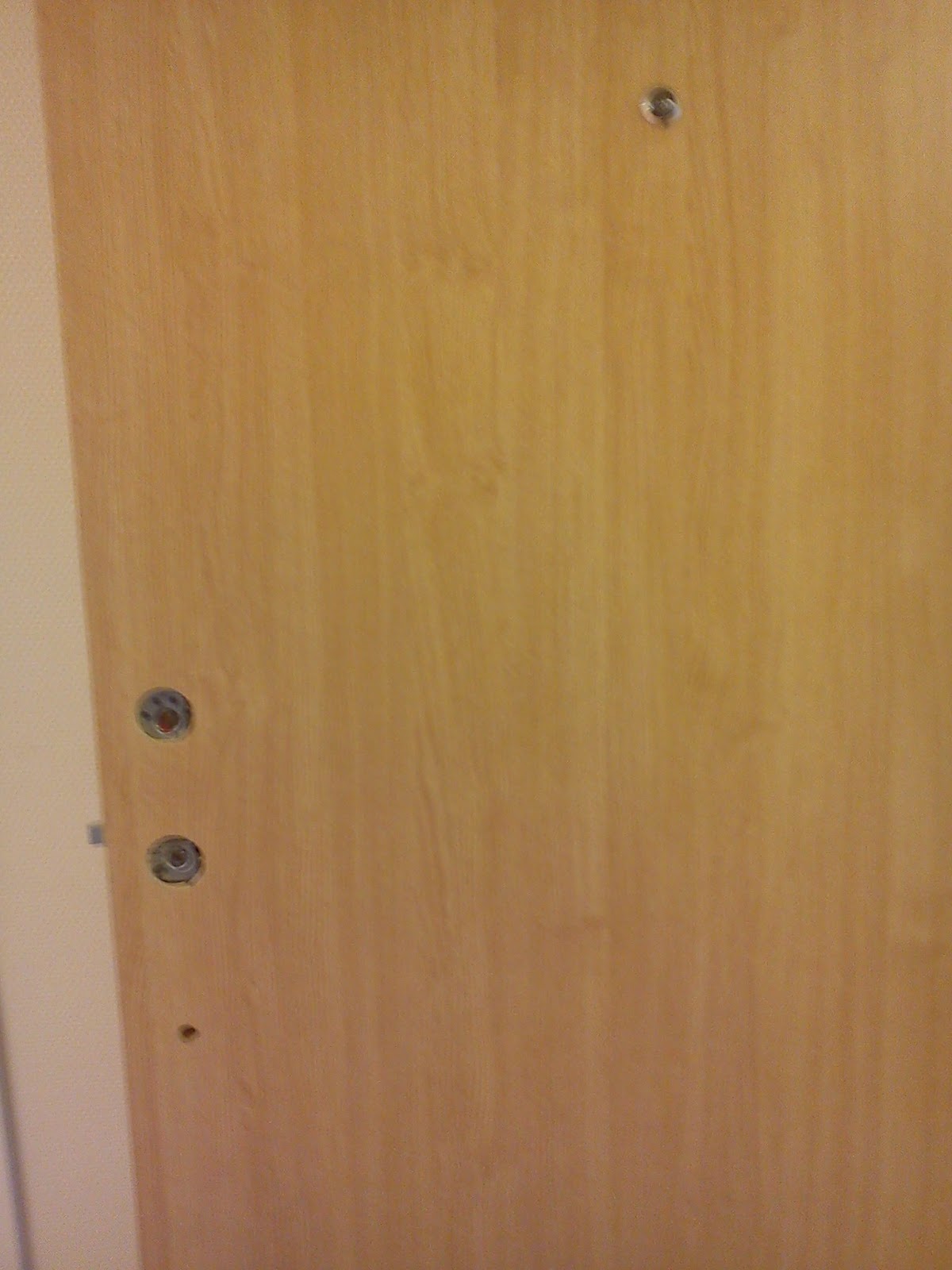 På alla yterdörrar är det ett hål borrat en bit under låskistan,vad kan det tänkas vara till för? vinnaren får all spik och annat skoj jag har i min vänstra ficka på jobbyxorna,det vore praktiskt om Johan eller nån gissade rätt ,då kan du bara stanna och hämta vinsten när du kör till jobbet.